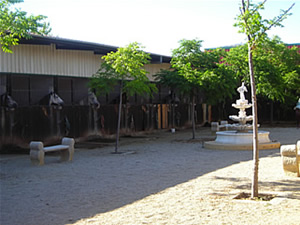 Su diseño al estilo andaluz, se estructura con 35 boxes orientados alrededor de un patio central, edificio de una sola planta distribuido en dos pistas cubiertas y grada, ducha cubierta, salón con chimenea, guardarnés, dos aseos - uno de ellos adaptado a personas con discapacidad - amplia zona de aparcamiento, pista exterior y tienda hípica. Y adosado al edificio del picadero, el granero y el pajar. |