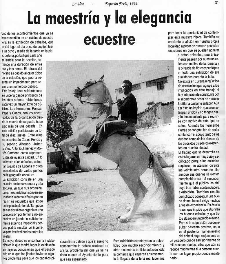 - Especial Feria 1999 - "La maestría y la elegancia ecuestre".